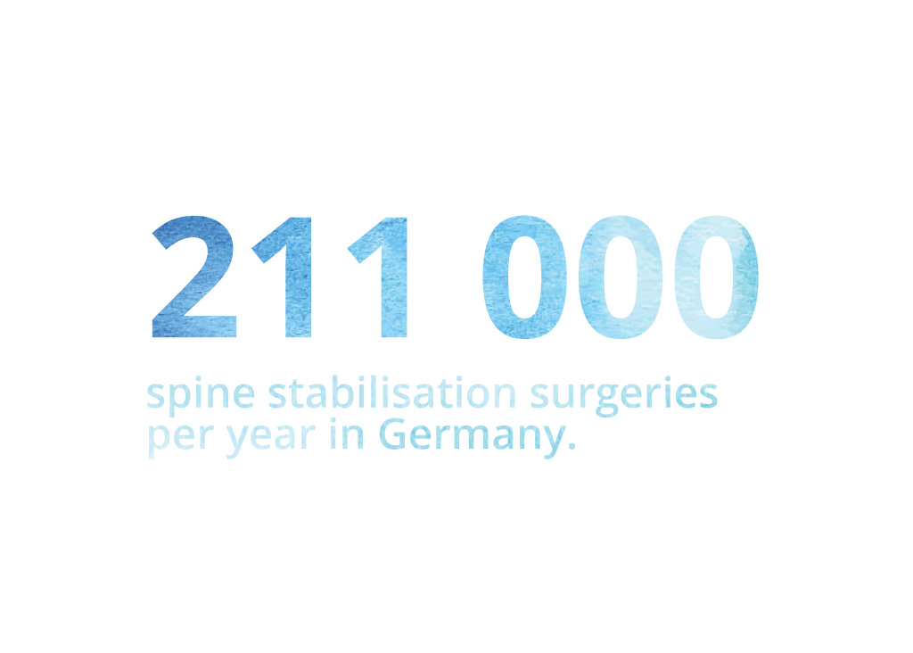 This number has risen significantly over the last years. During a spine stabilisation or fusion, screws are inserted into the vertebrae. At the moment the majority of screws are inserted without the use of a navigation system. However the complication rate caused by malpositioned screws is ten times less in navigated surgeries. And this is where our product comes in.